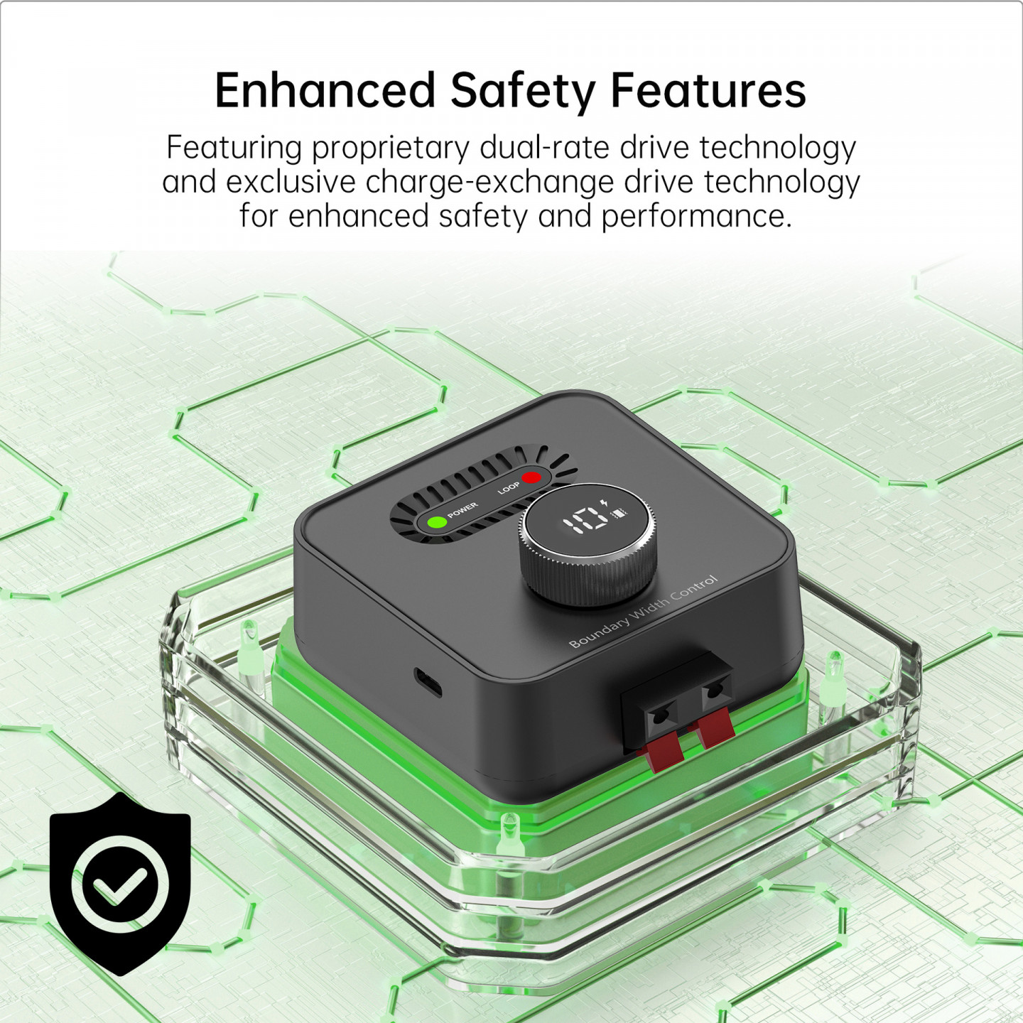 Ohradník je navrhnutý s dôrazom na energetickú úspornosť a maximálnu prevádzkovú bezpečnosť. Vďaka inteligentnému riadeniu výkonu pracuje so stabilným signálom bez prehrievania, čo zaručuje spoľahlivú prevádzku aj pri dlhodobom používaní. Vstavaná ochrana proti prepätiu chráni zariadenie pred poškodením v prípade úderu blesku, zatiaľ čo indikátor odpojenia vás včas upozorní na akékoľvek poruchy alebo prerušenie signálu.