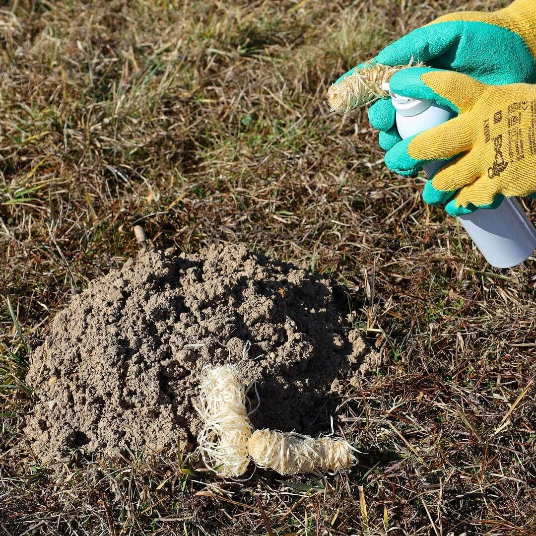 Odhrňte zeminu z krtinca a nájdite vchod do nory. Vložte nosič pachovej látky (zvitok drevitej vlny) a pomocou trubičky doň trikrát krátko aplikujte koncentrát. Zvitok potom ľahko prihrňte zeminou tak, aby zostal zachovaný prístup vzduchu. Jedno balenie 250 ml vystačí až na 80 nosičov pri aplikácii na troch miestach.